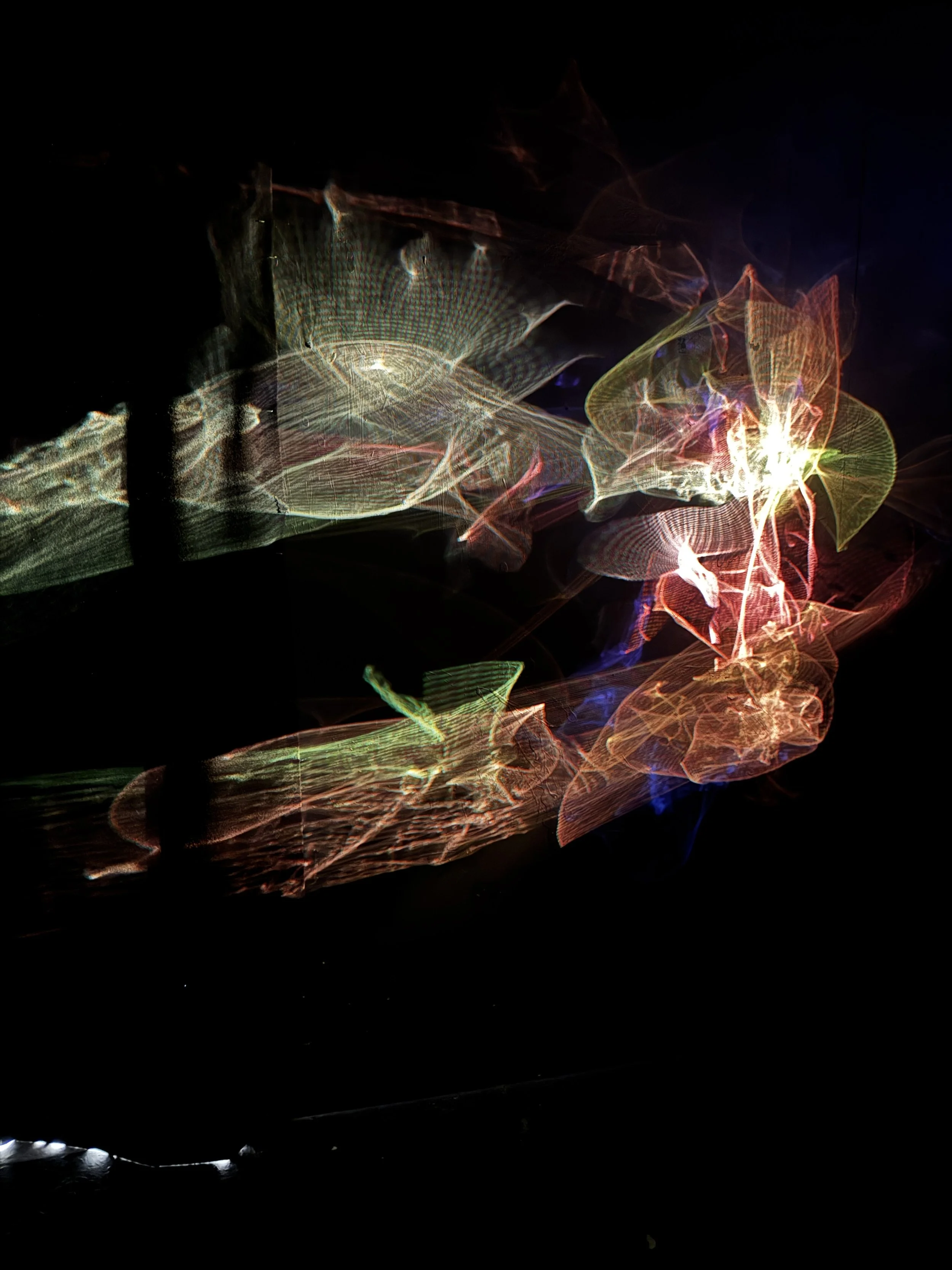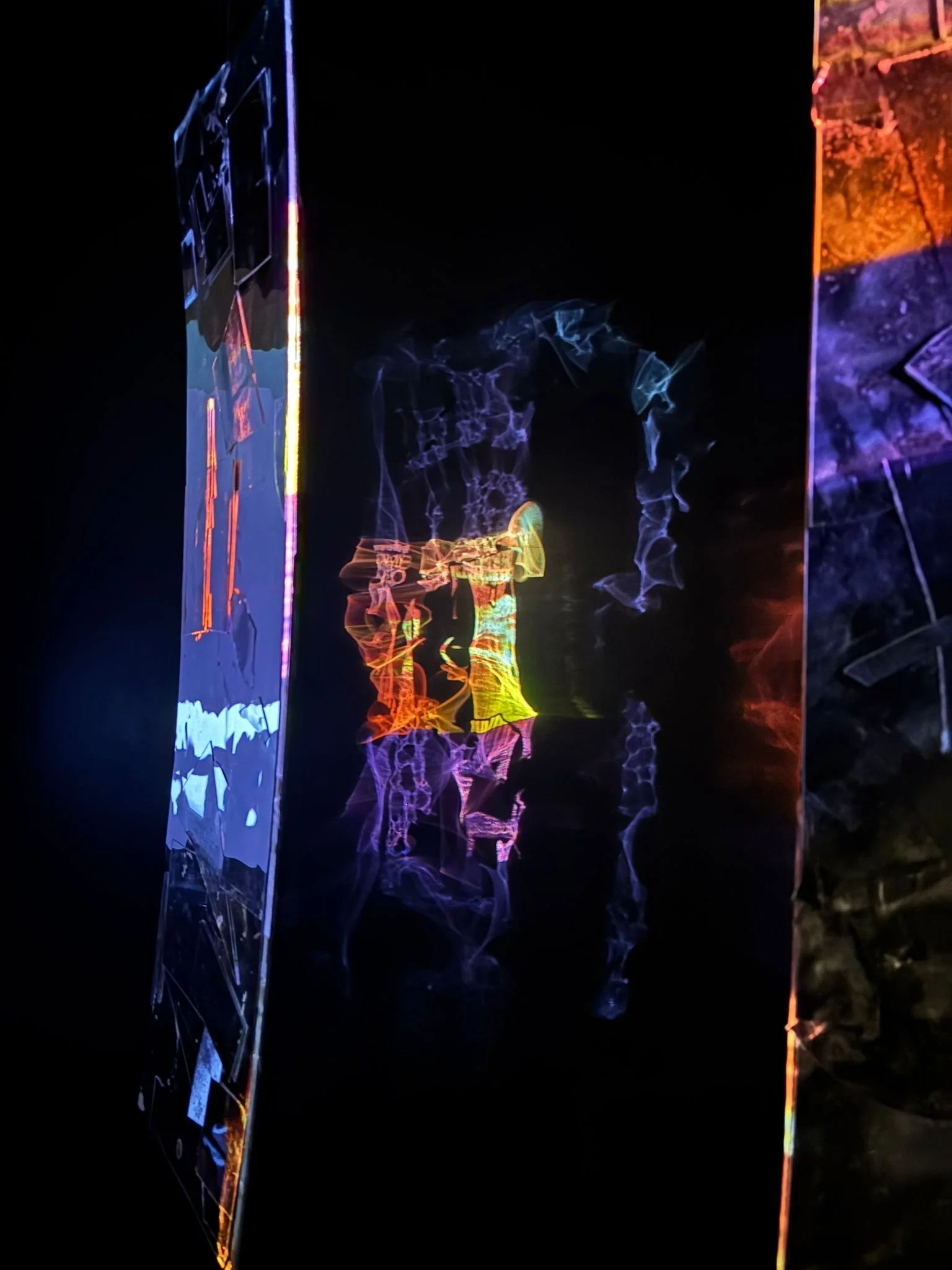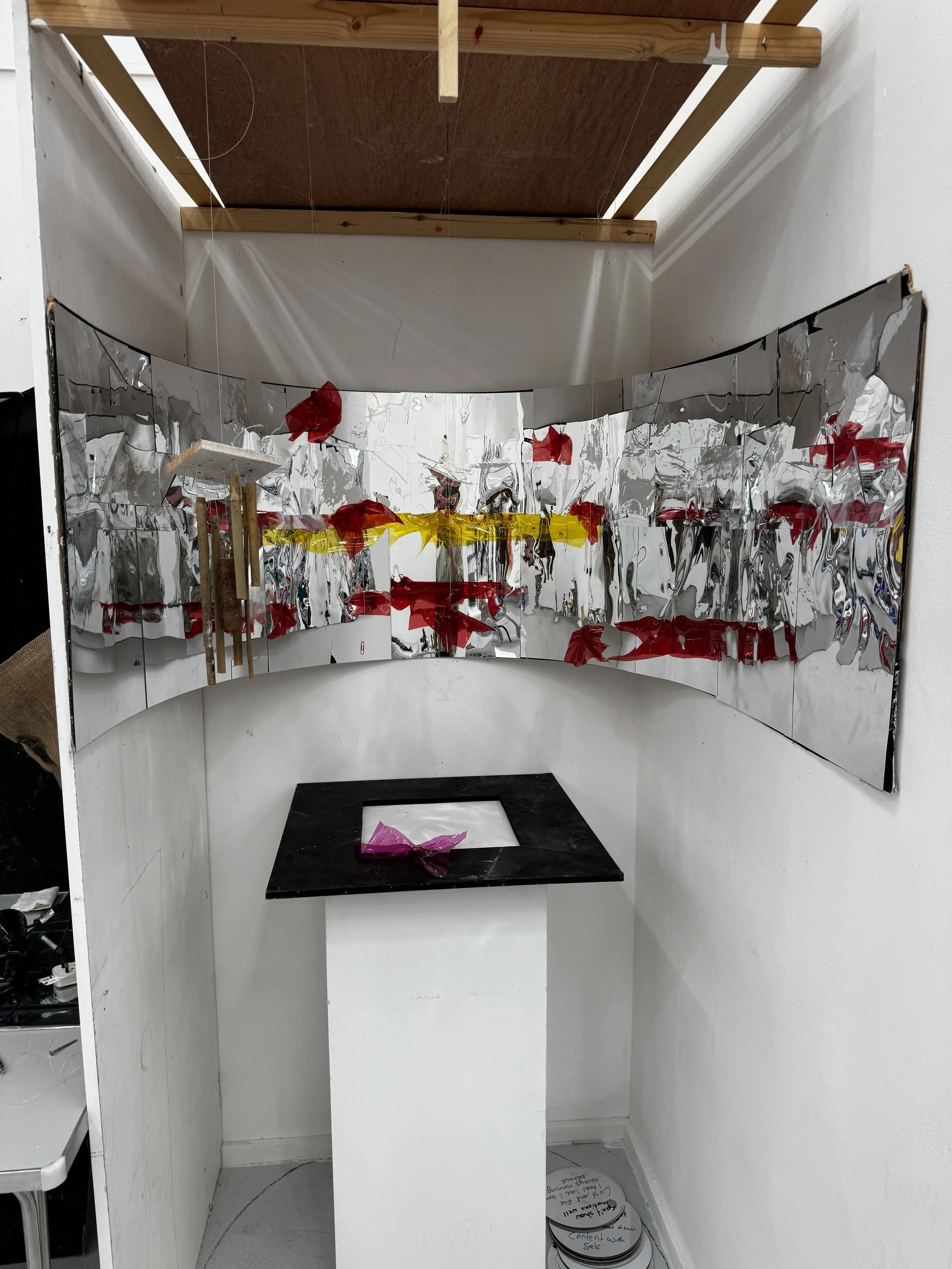 Grounded in phenomenology and healing modalities, my work emphasizes viewer experience, aiming to connect on an emotional level while fostering introspection. Each piece is a balance of experimentation and discovery, often shaped by unexpected challenges, like using broken mirrors to create unique light patterns. I also explore how sound and light together can create calming, immersive experiences that encourage reflection and emotional healing.